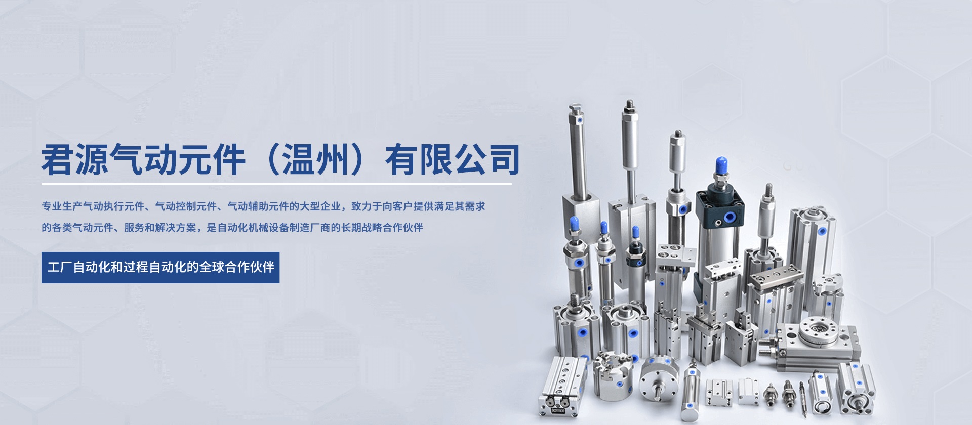 君源氣動元件(溫州)有限公司是專業生產氣動執行元件、氣動控制元件、氣動輔助元件的大型企業,致力于向客戶提供滿足其需求的各類氣動元件、服務和解決方案,是自動化機械設備制造廠商的長期戰略合作伙伴。擁有一流的研發團隊和管理人才、高精密度的生產、檢測設備。